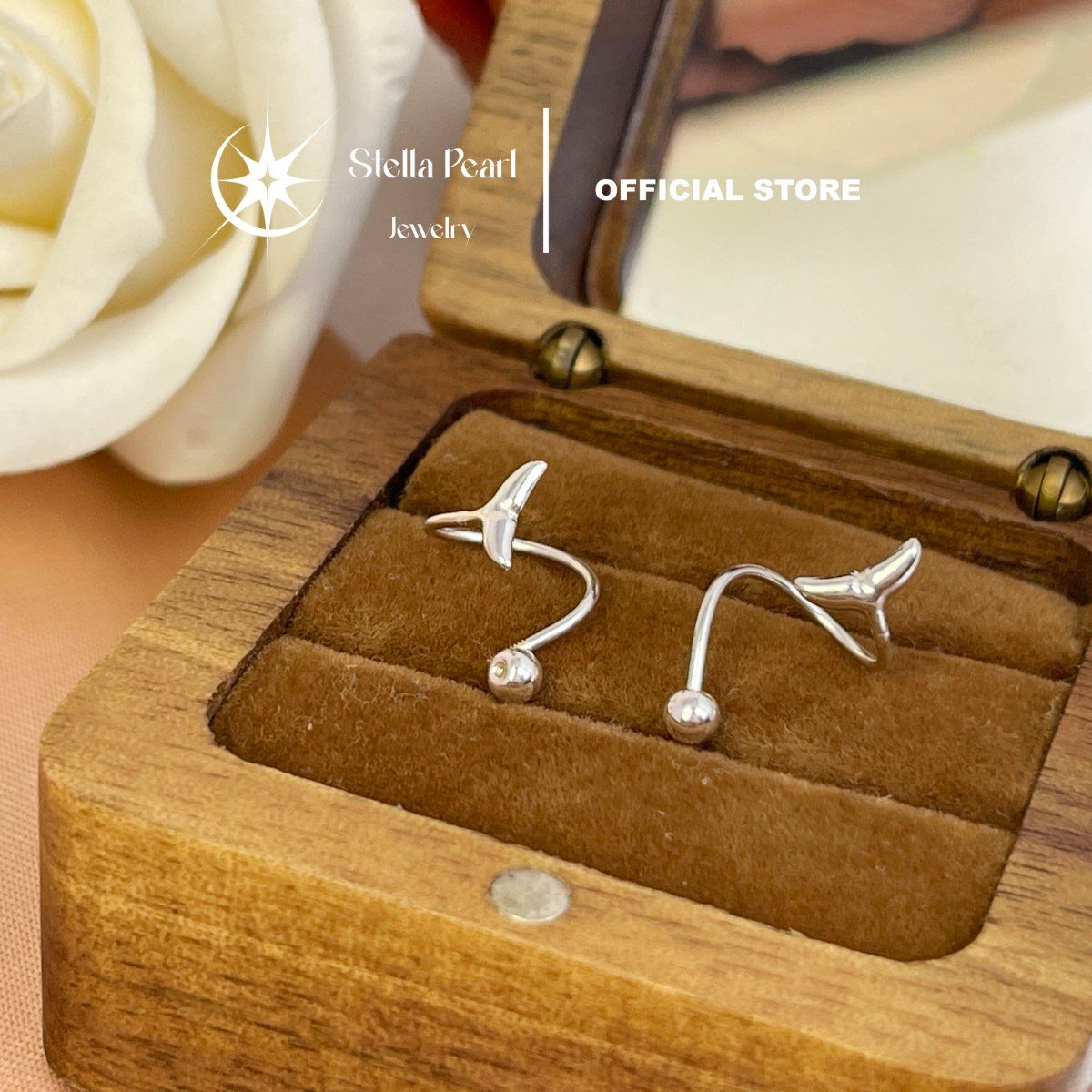 Bông Tai Bạc S925 Hình Đuôi Cá Chốt Bi Vặn Không Đau Tai – Stella Pearl E510402