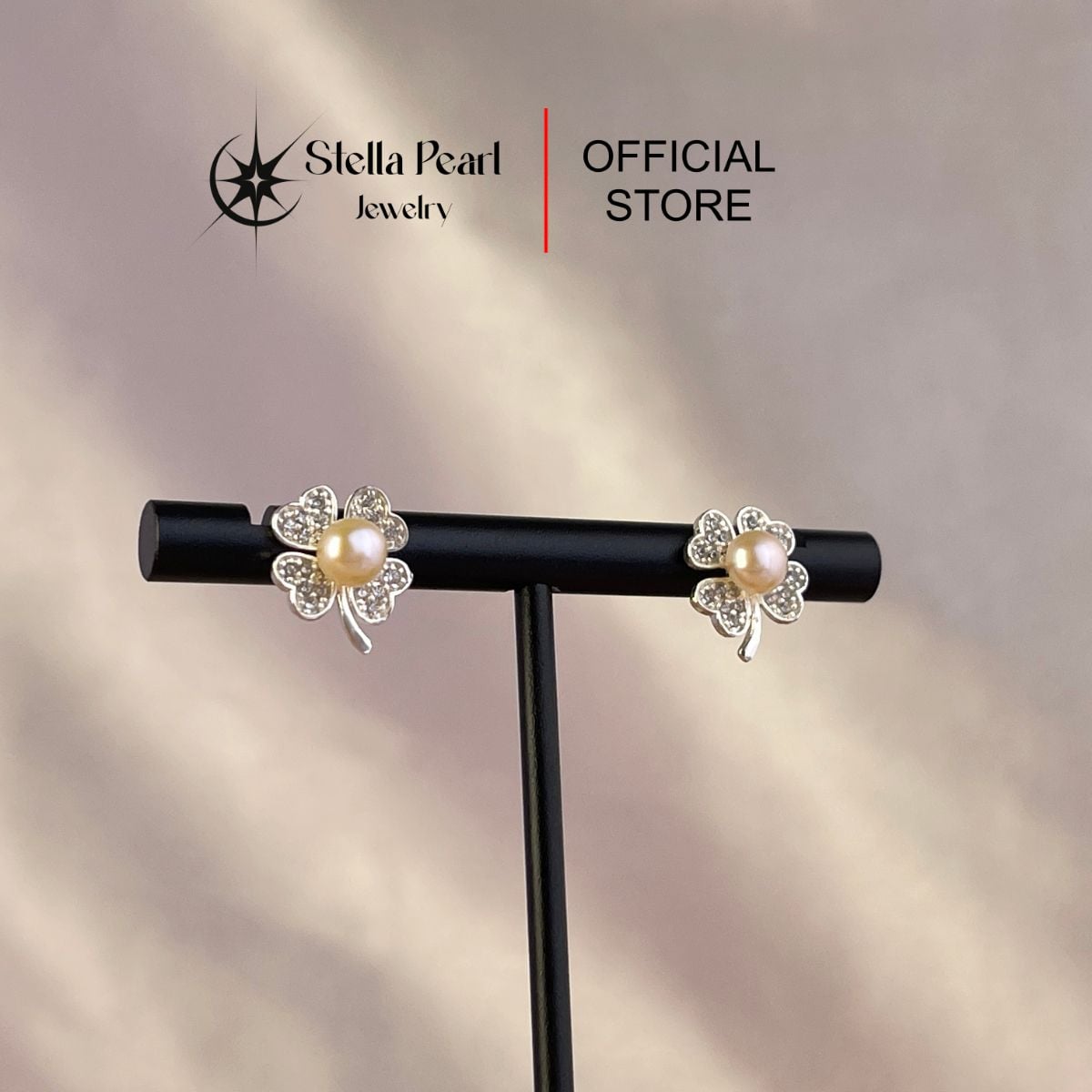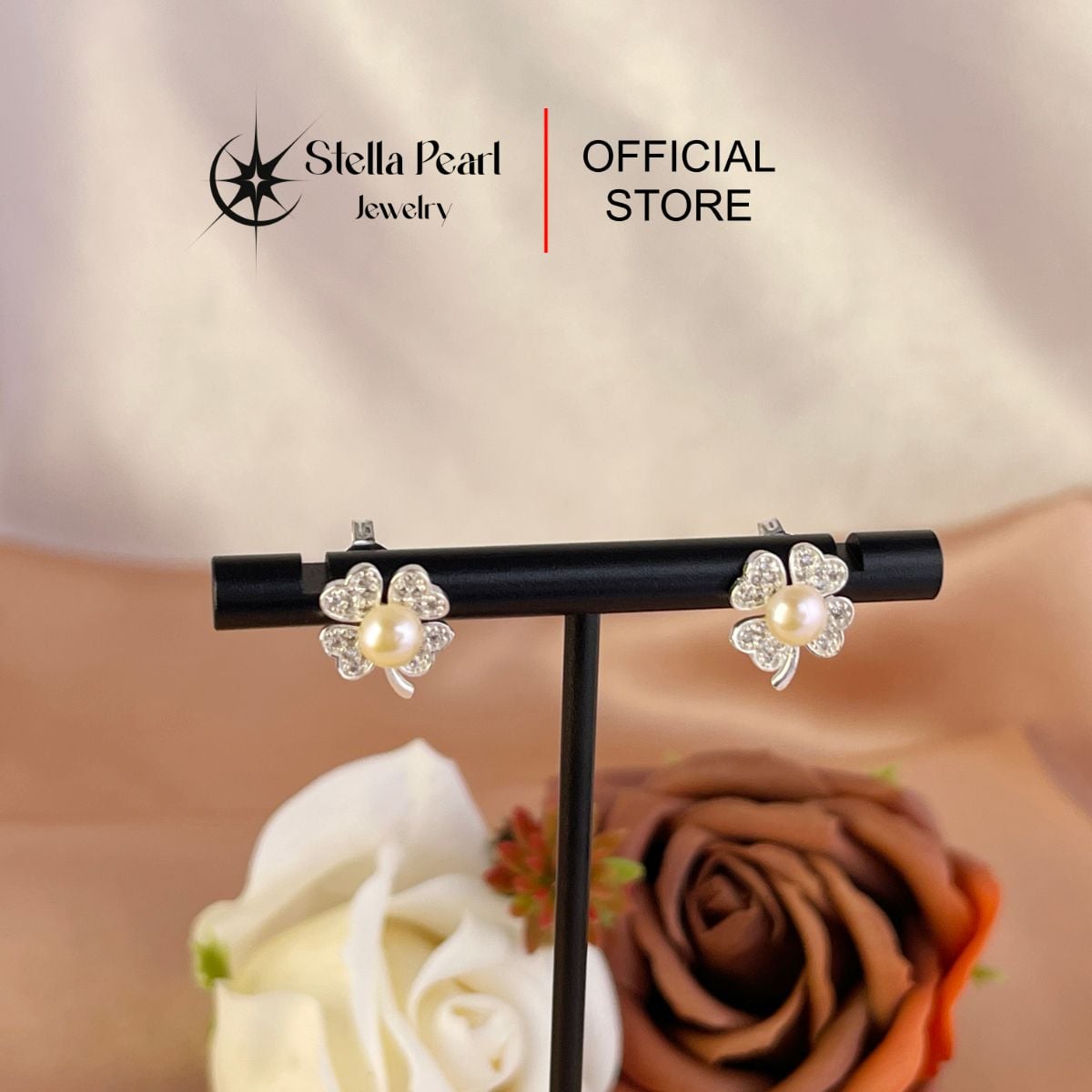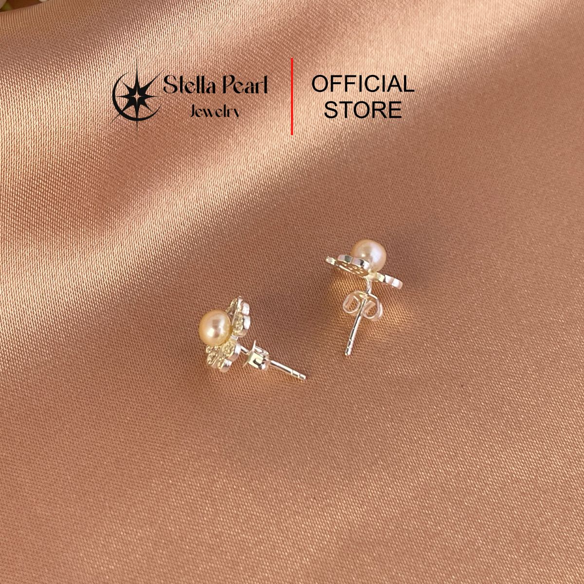 Bông Tai Hoa 4 Cánh Đính Ngọc Trai Màu Mỡ Gà 5mm | Bạc S925 - E55002