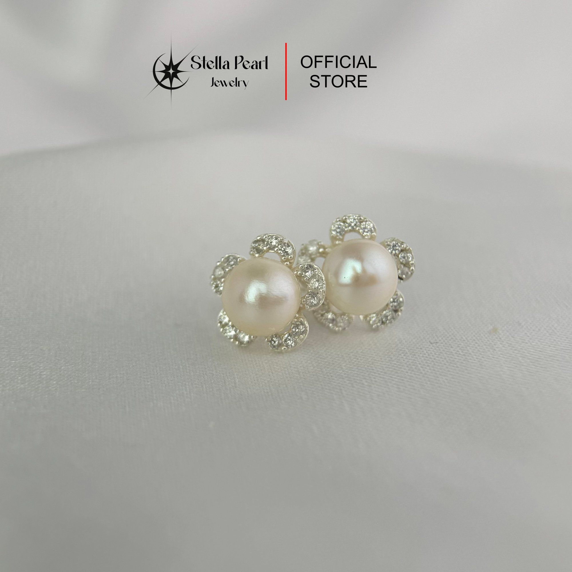 Bông Tai Bạc S925 Đính Ngọc Trai Trắng 7.5mm Hình Hoa 5 Cánh – Stella Pearl E254101