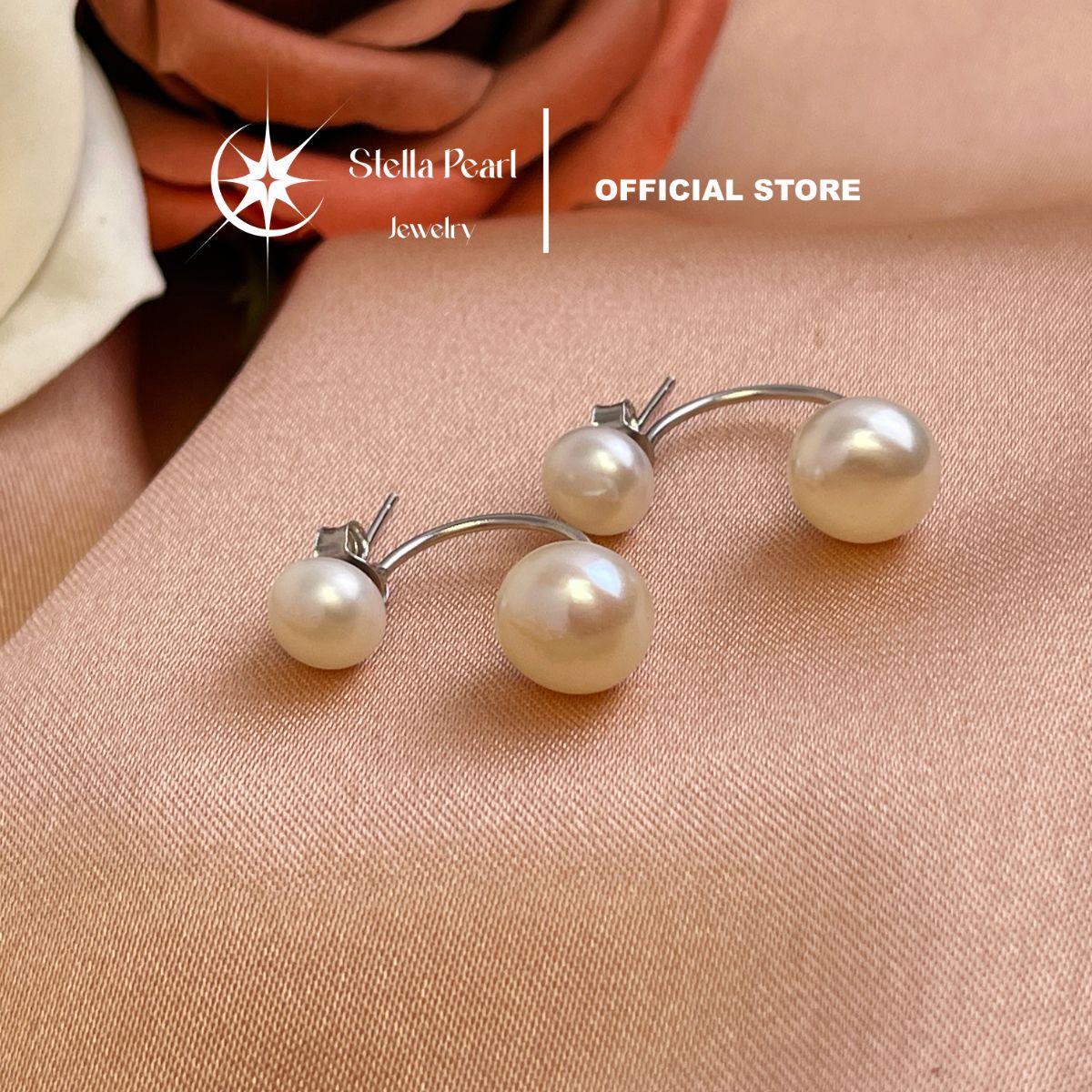 Bông Tai Ngọc Trai cong 7mm – 9.5mm khung bạc xi bạch kim Thiết Kế Thanh Lịch, Sang Trọng | Stella Pearl E510103