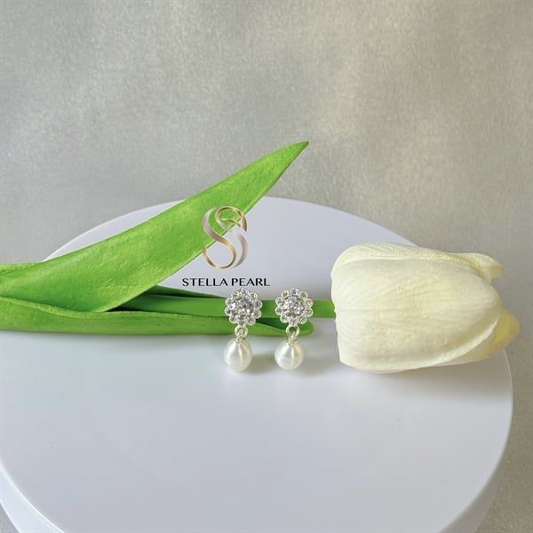 Bông tai Ngọc trai giọt thả 8 ly bạc - Stella Pearl E52204
