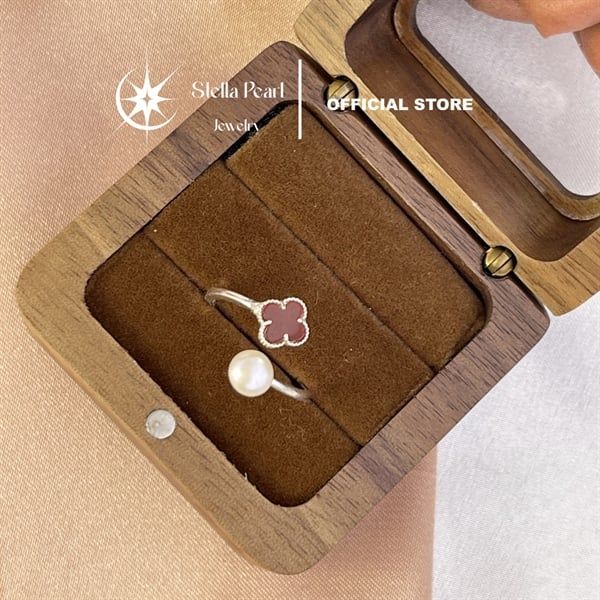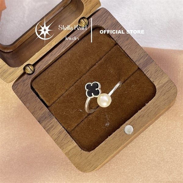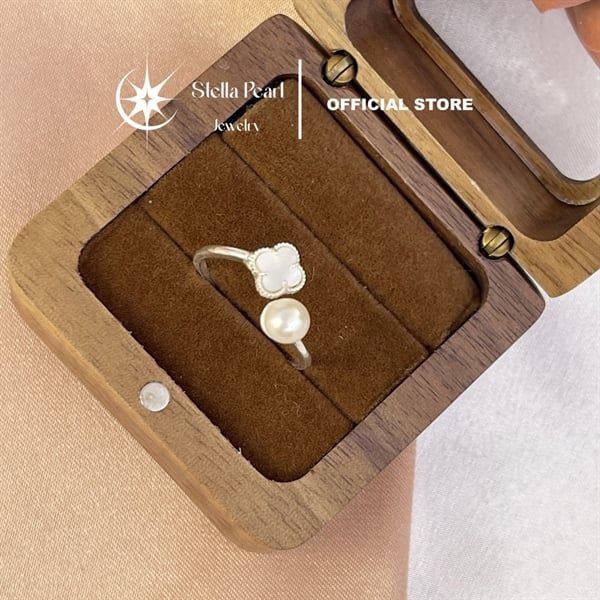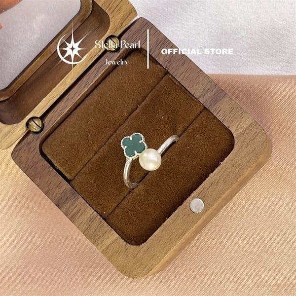Nhẫn bạc ngọc trai bạc S925 mặt cỏ 4 lá phối ngọc trai 6mm - Stella Pearl R56308
