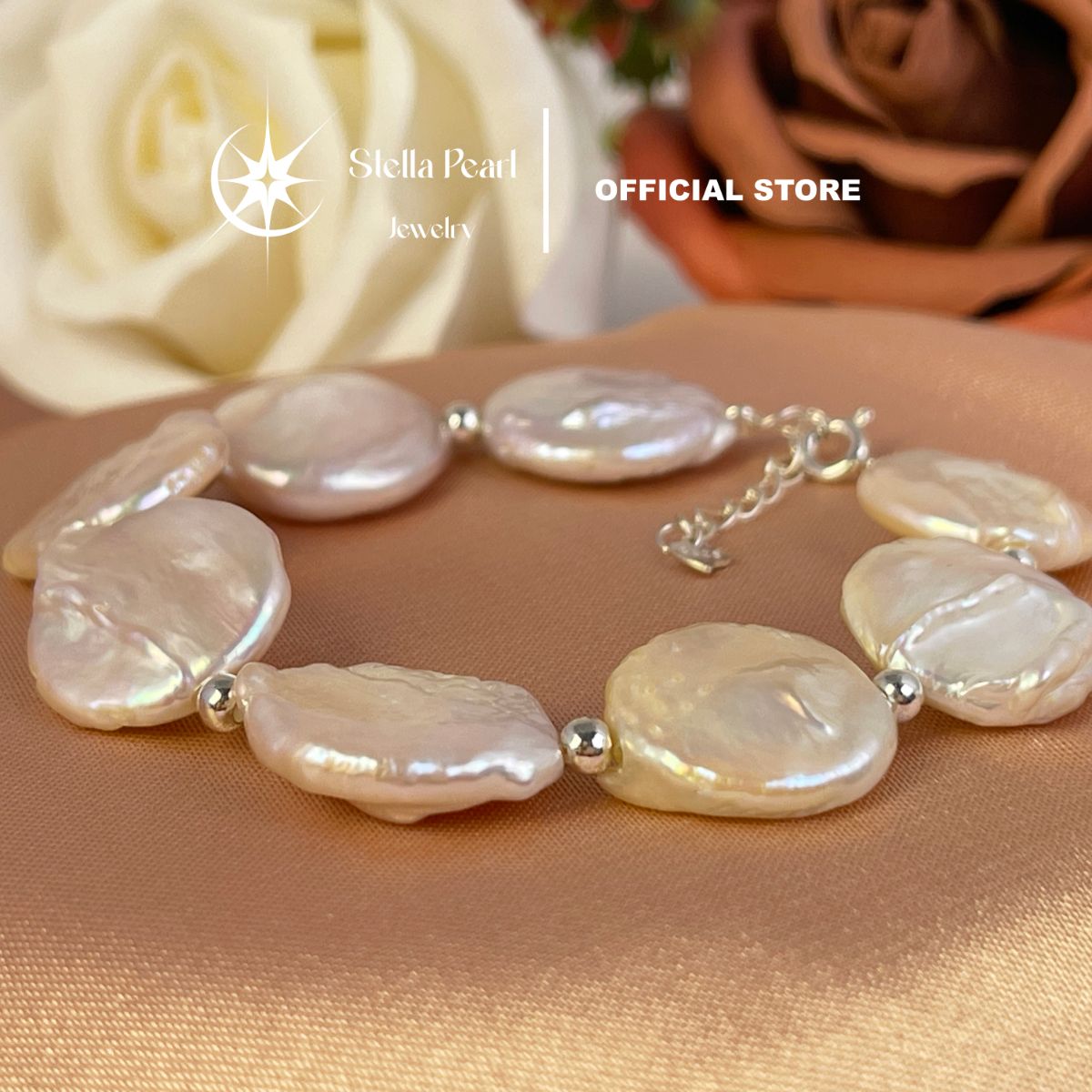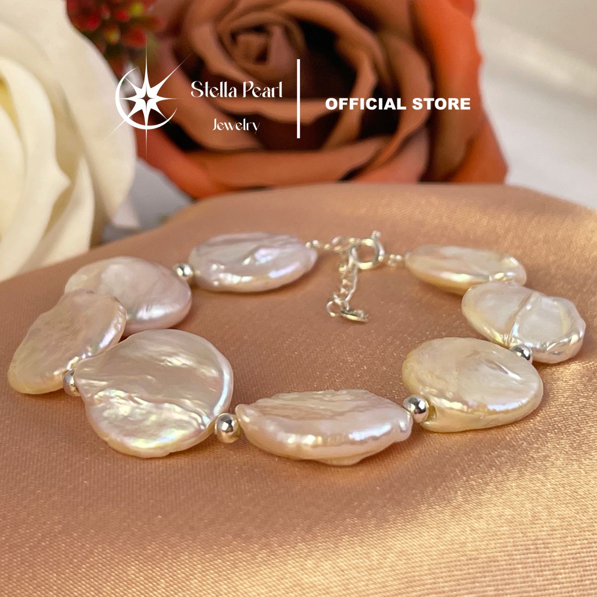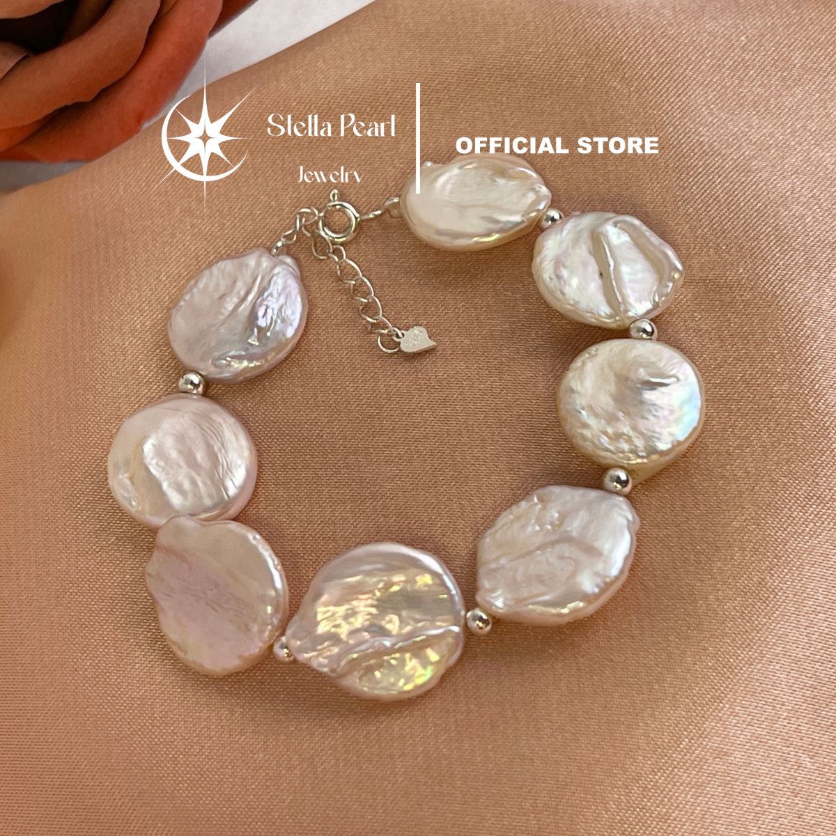Vòng tay ngọc trai baroque 14-16mm – phối bi bạc & khoá bạc, phong cách cá tính Stella Pearl B58206