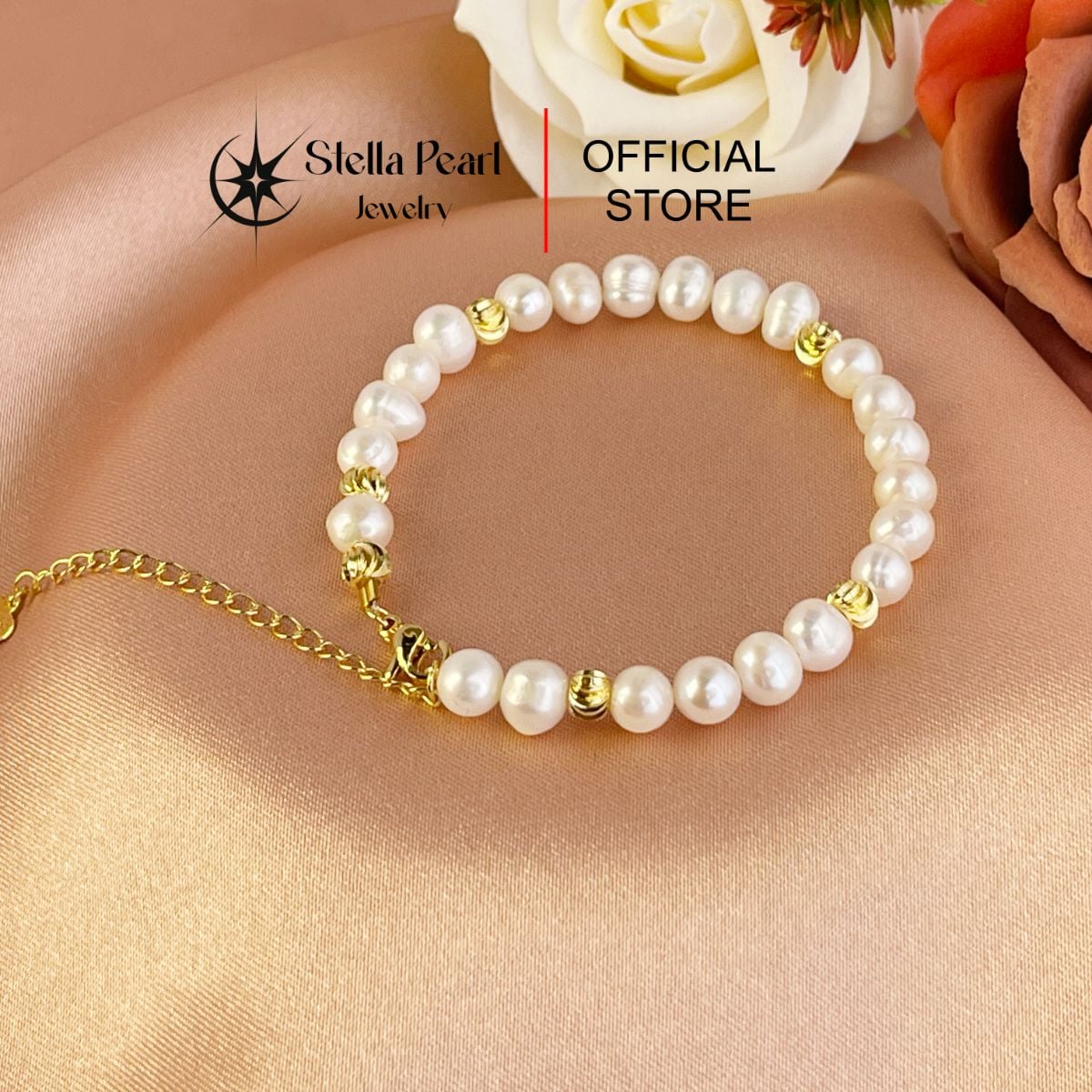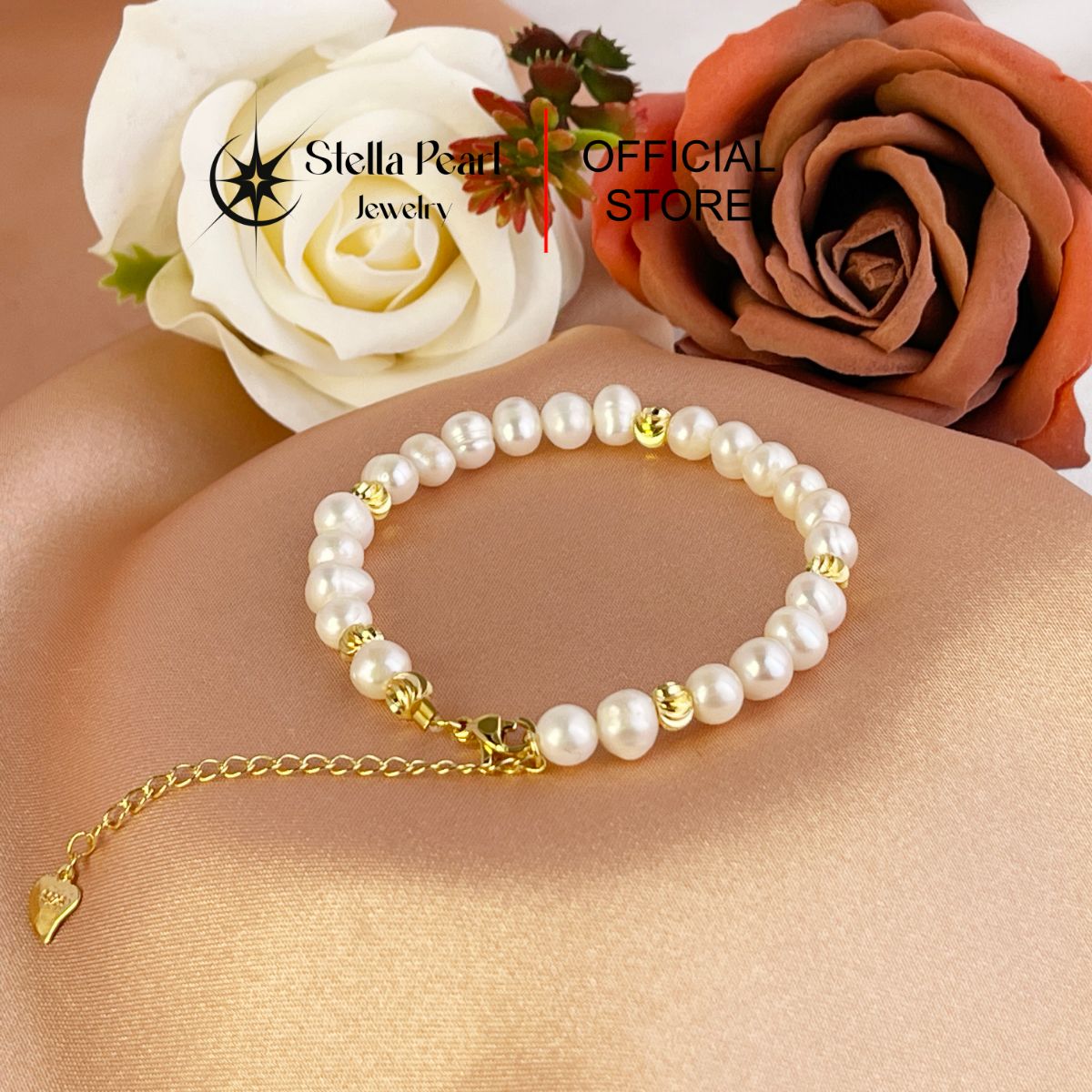 Vòng tay ngọc trai 6-6.5mm phối bi hợp kim - Stella Pearl B56001