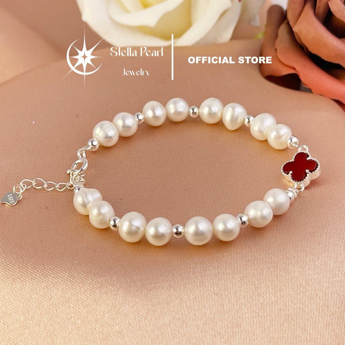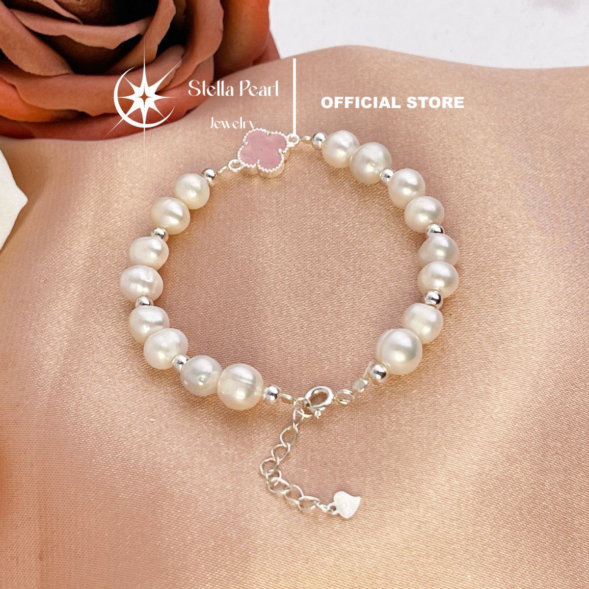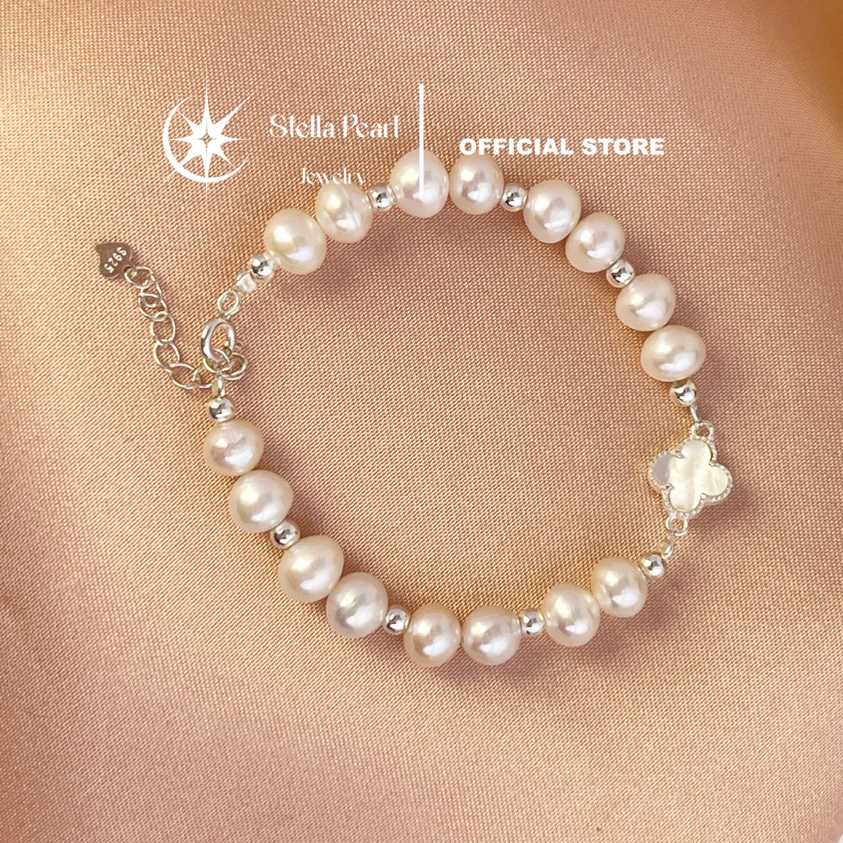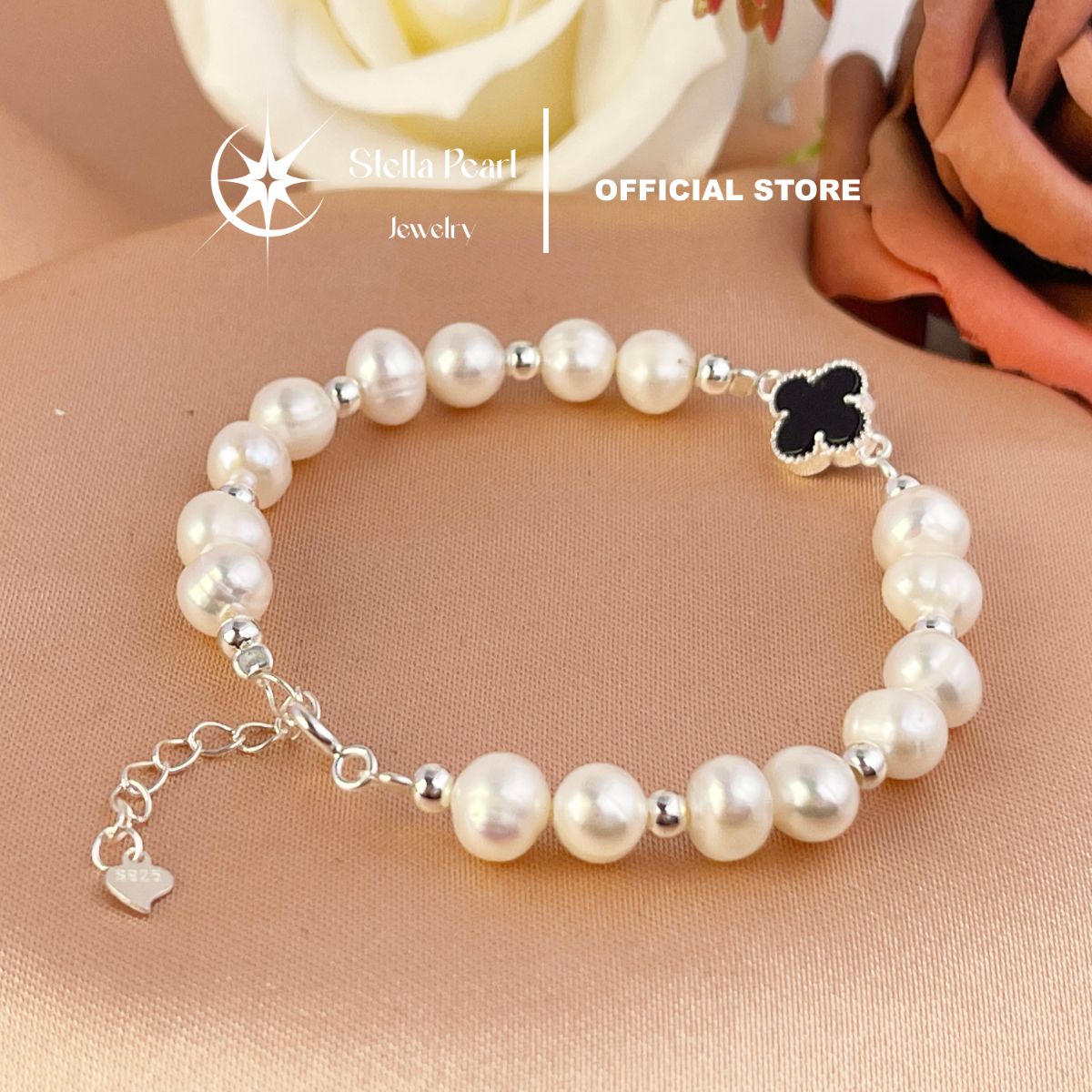 Vòng Tay Ngọc Trai 6–7mm Charm Cỏ 4 Lá – Bạc S925 | Stella Pearl B56603