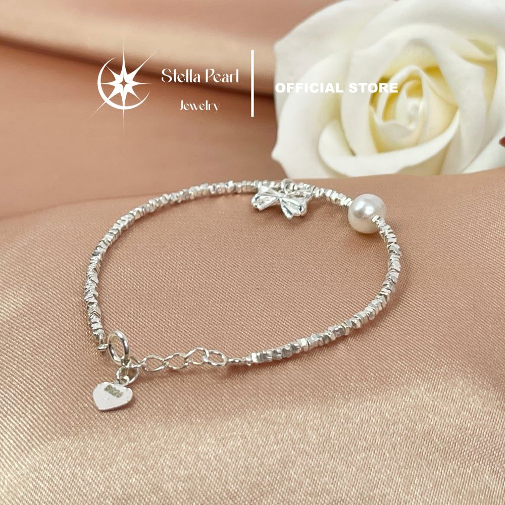 Vòng tay bạc hạt vỡ phối ngọc trai thật 8mm và charm nơ bạc – Stella Pearl B59301